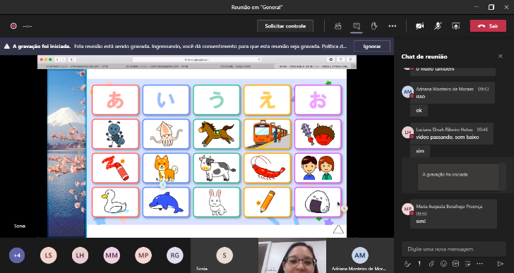 また,今学期は「日本語教育実習」を受け持っているのですが,教育実習生もペアになって,Teamsを使って日本語の授業を行っています。授業をすること自体が初めてである教育実習生がほとんどという中,オンラインで!授業をしなければならないとは,本当に大変だと思います。ところが,3~4回目ぐらいの授業から徐々に慣れてきたようで,緊張が解けてきたという声が聞こえ始めました。今では私よりも学生の方がTeamsを使いこなせているようです。それでも機械的,技術的トラブルは避けられず,授業中に先生(教育実習生)自身がネットから落ちてしまうこともあります。