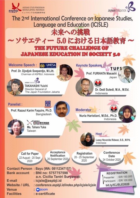 今日、2020 年 10 月24日(土)、第 2 回インドネシア日本語教育学会による国際セミナーがオンラインで開催されました。このセミナーは、インドネシア日本語教育学会と国際交流基金ジャカルタ支部の助成を受けました。
