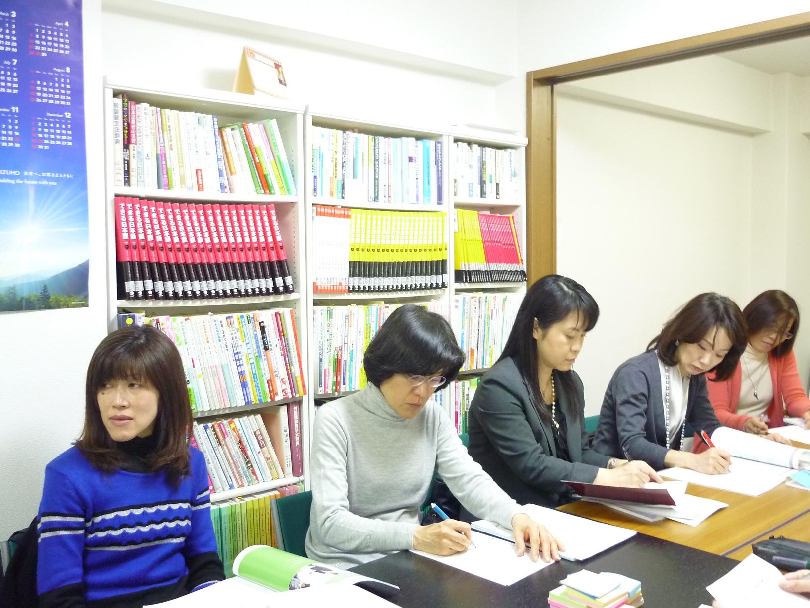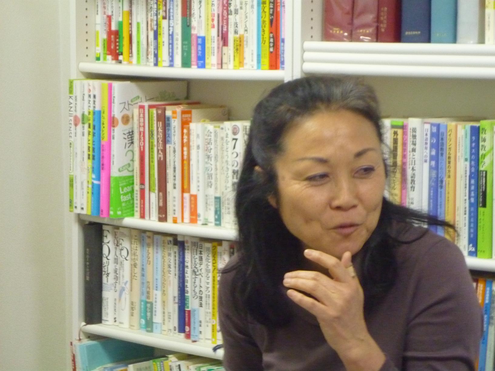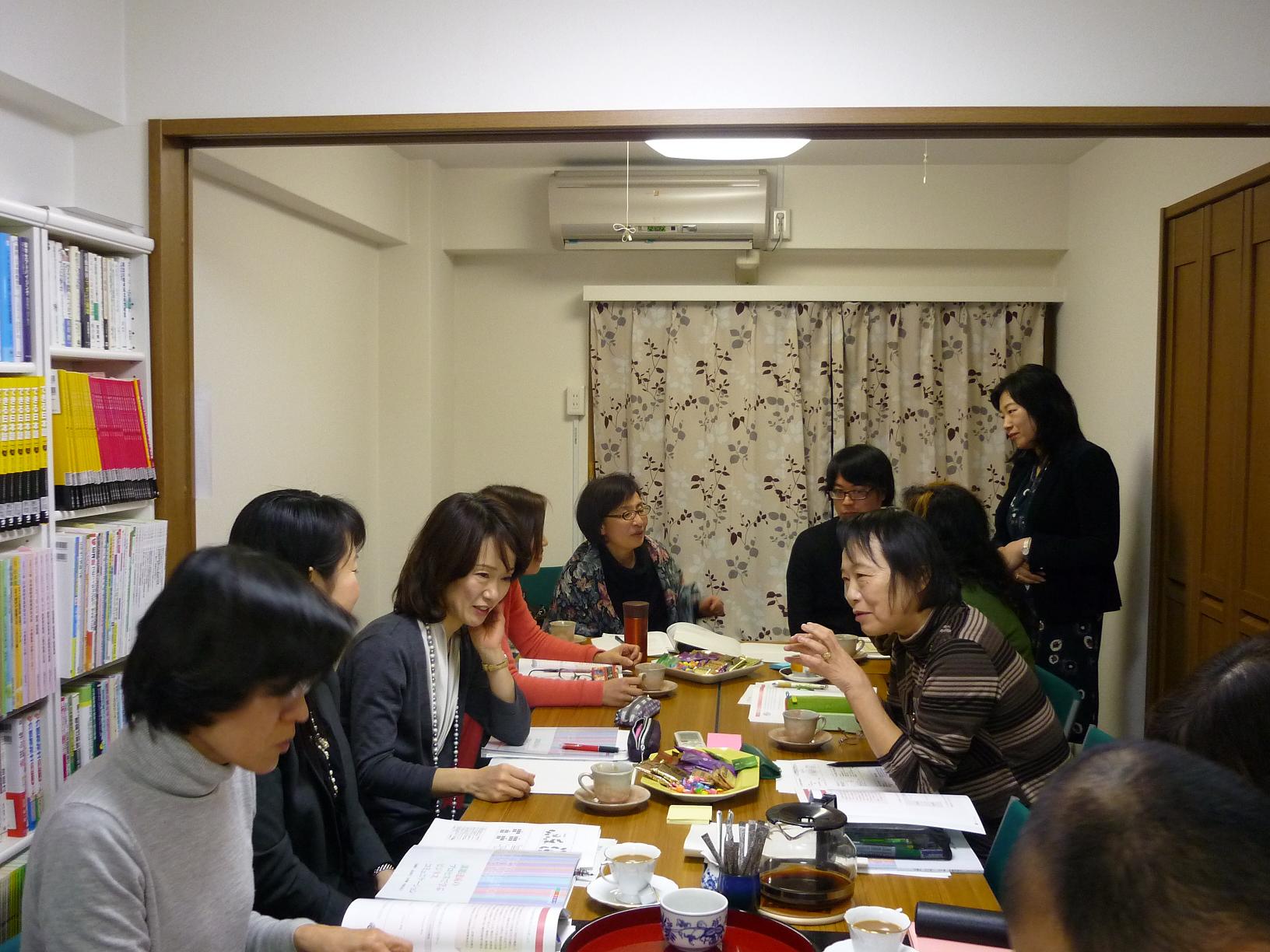 参加者の多くは、現在ビジネス日本語の授業を担当している方でした。「日頃悶々としているビジネス日本語への思い」を胸に参加した方、「実際に『課題遂行のプロセスで学ぶビジネスコミュニケーション』を授業で使用中で、より効果的にテキストを使用するために著者のお話をお聞きしたい」ということで参加した方などが集まり、和やかな雰囲気の中著者との対話が進みました。前半はテキスト開発の背景や理由についてのお話があり、後半はタスク体験コーナーもありました。