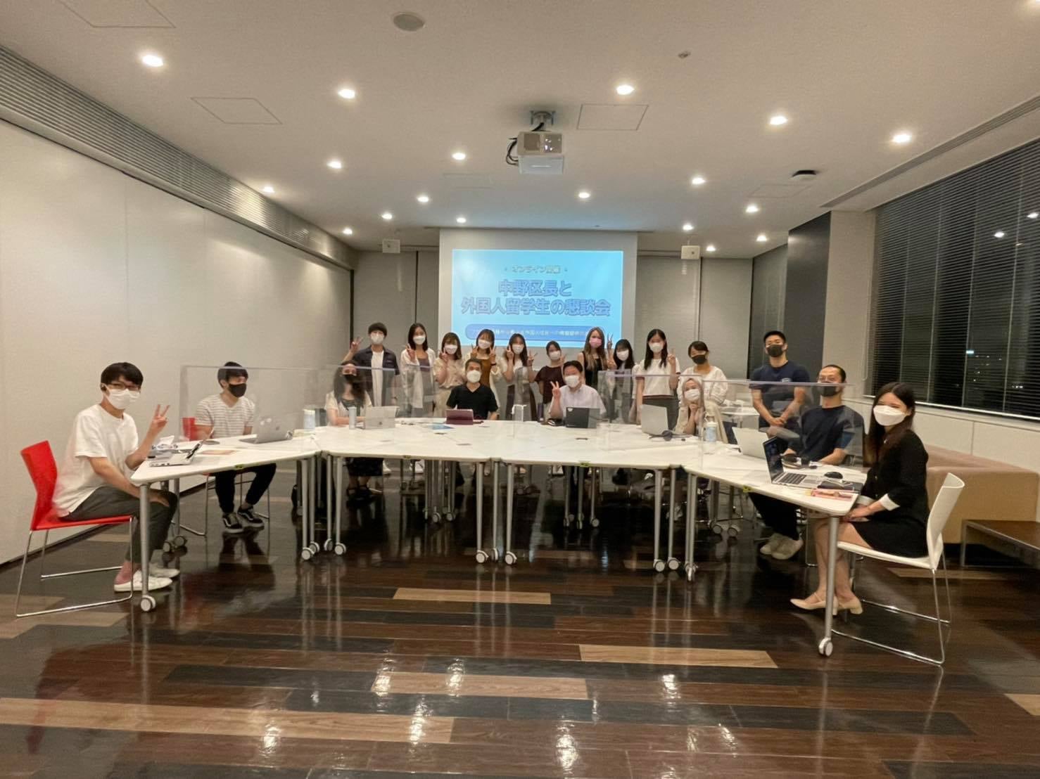 コロナの影響で、昨年、今年とオンラインでの実施となりましたが、区長、大学生、留学生の間で活発な意見交換がなされました。
