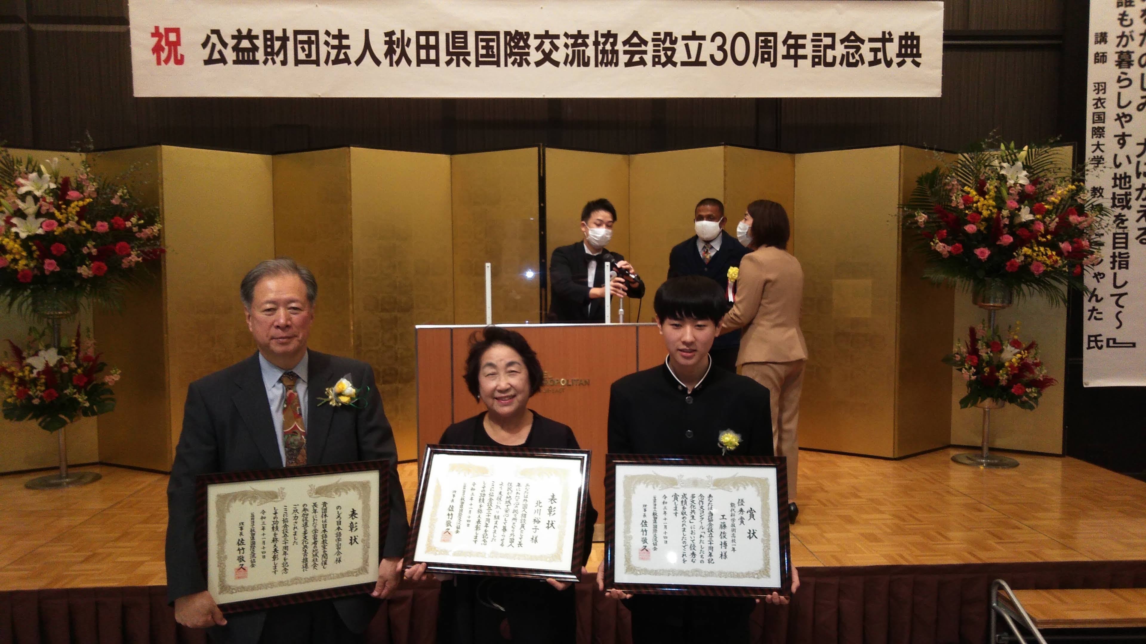 11月14日の日曜日、秋田市のホテルにて「秋田県国際交流協会設立30周年記念式典」が行われました。