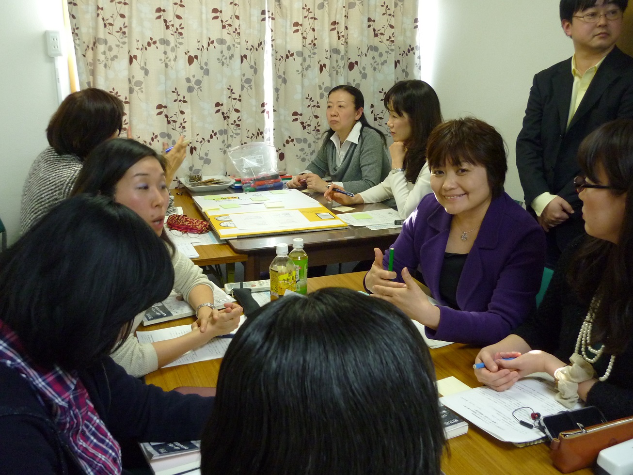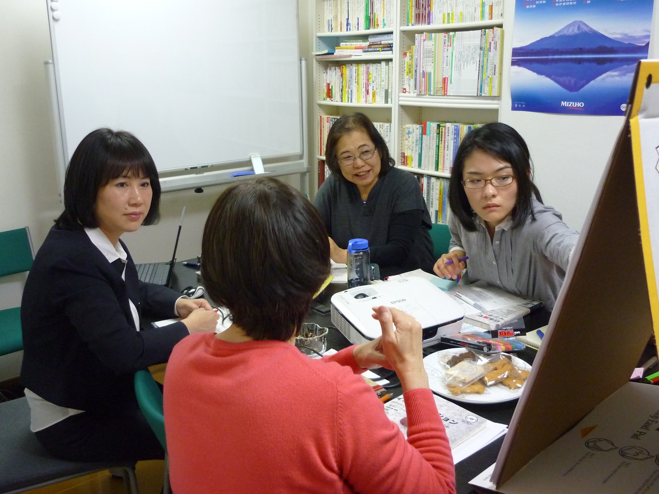 昨年4月、「日本語でインターアクション」著者説明会後の懇親会をきっかけに、このたびの研修計画がスタート。その後実践フォーラムでの発表を経て『実践持ち寄り会』が発足し、昨年10月より毎月の勉強会を重ねられ、実に1年をかけてじっくり熟成させたものを3名の先生方がそれぞれの教育現場(ボランティアクラス・日本語学校・ビジネス日本語科)で実践されたとのことです。この経緯をうかがっただけでも、これから始まる報告会に胸躍る気分になりました。
