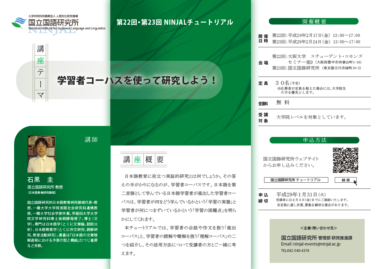 内容 本セミナーでは,国立国語研究所の日本語教育の共同研究プロジェ