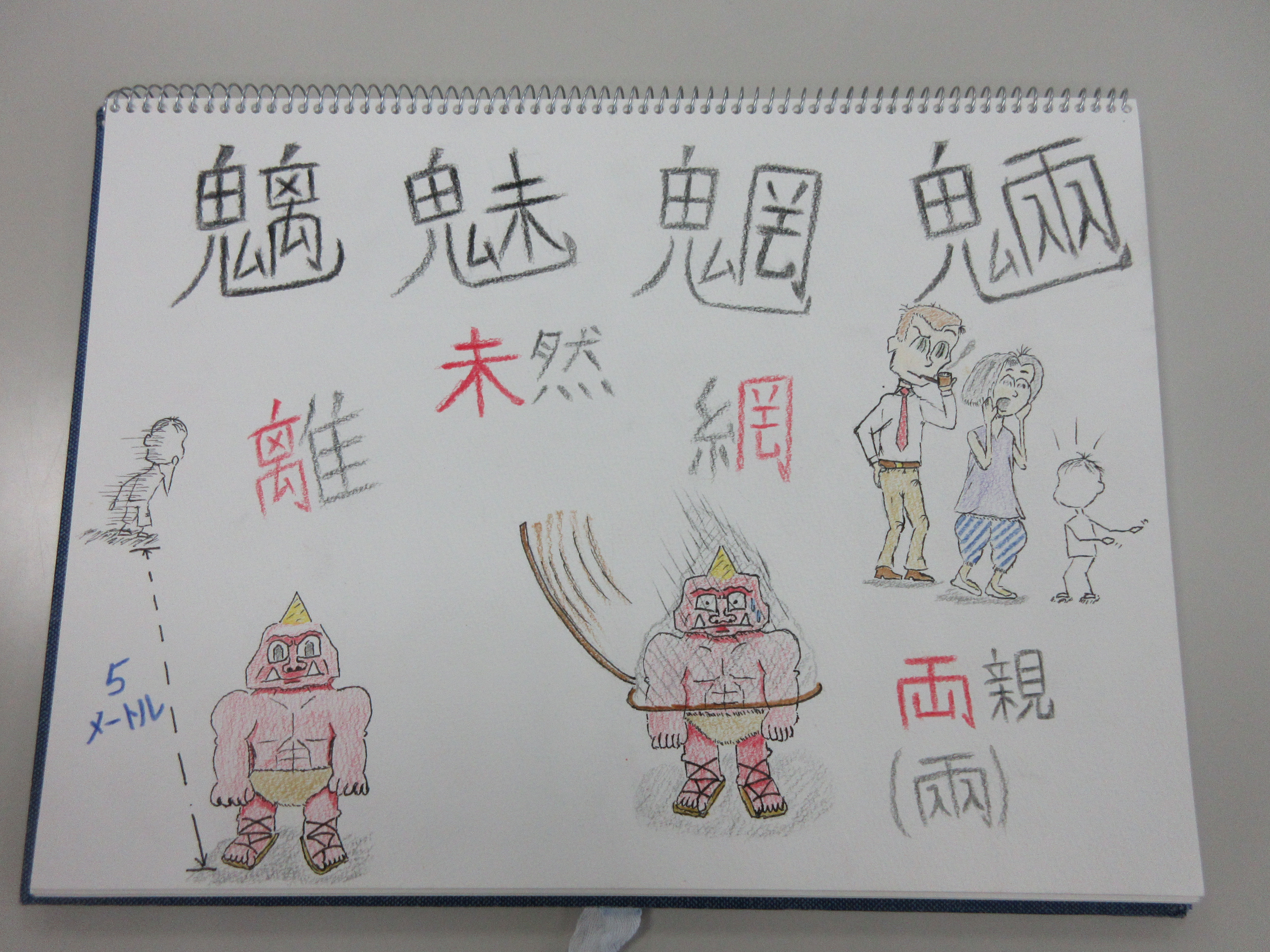 そして、漢字は難しいからこそ遊び心を持って勉強することが大切なのだとして、さらに「漢字は三千年前から今日に至るまで、常に進化してきました。漢字のストーリーで理解を深め、漢字の形をおもちゃとして遊び、楽しみながら勉強するのがお薦めです」と付け加えてくださいました。インタビューではいろいろな例をあげてくださいましたが、その1つに「魑魅魍魎(ちみもうりょう)」があります。このストーリーに関しては、上述したU-Tubeをご覧ください。きっとこれで「魑魅魍魎」という漢字は二度と忘れることはないでしょう。ではもう少し、「ブレット先生の漢字学習アドバイス」をお伝えしましょう。
