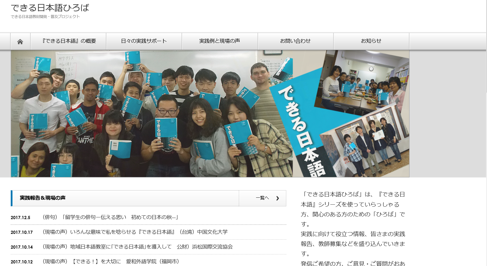 新ホームぺージは、『できる日本語』を使っていらっしゃる方、関 心のある方々とご一緒に充実させていきたいと考えています。また、このホームページを軸 に、さまざまな方々がつながり、ネットワーク構築が進むことを願っています。