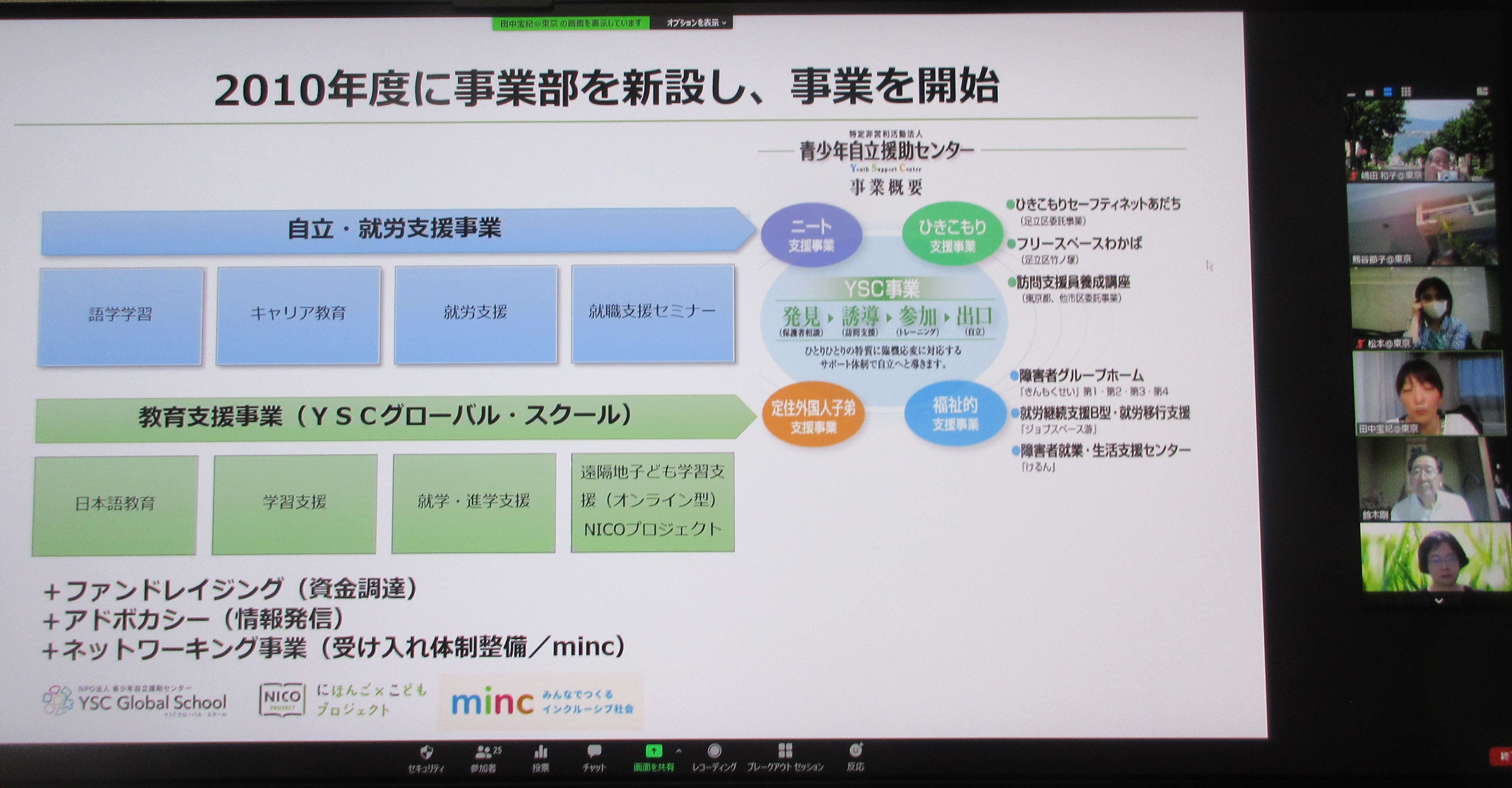 参加者は、コロナ禍における「子どもの日本語支援」についての現状、課題、そして何をすべきかといったことに